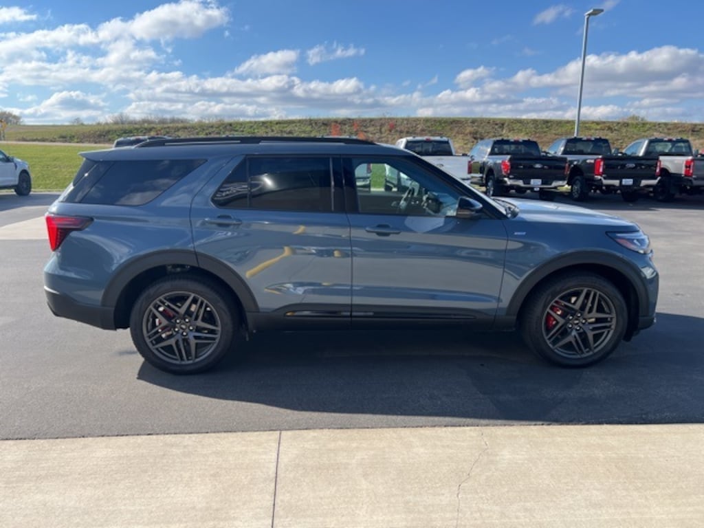 New Price! Vapor Blue 2025 Ford Explorer ST-Line 4WD 10-Speed Automatic 2.3L EcoBoost I-4 4WD, 110V/150W AC Power Outlet, 2nd Row Heated Seats, 3rd row seats: bench, Ambient Lighting, Auto-Dimming Interior Rear-View Mirror, Equipment Group 300A Standard Package, Front fog lights, Heated front seats, Heated steering wheel, Heated Unique Cloth Captain's Chairs, Memory Driver's Seat, Navigation System, Panoramic Vista Roof w/Power Shade, Performance Brakes, Power Liftgate, Power-Folding Sideview Mirrors w/Autofold, Premium Package, Rain-Sensing Wipers (Front Only), Red Painted Perf Front & Rear Brake Calipers, ST-Line Street Pack, Wheels: 21" Magnetite-Painted Aluminum, Wireless Charging Pad.