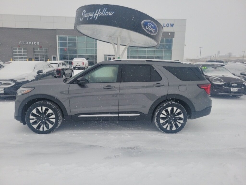 New Price! Carbonized Gray Metallic 2026 Ford Explorer Platinum 4WD 10-Speed Automatic 2.3L EcoBoost I-4 4WD, Equipment Group 600A Standard Package, Front fog lights, Heated front seats, Heated rear seats, Heated steering wheel, Lux Leather Package, Navigation System, Panoramic Fixed Glass Roof w/Power Shade, Platinum Badges on Front Row Seats, Power Liftgate, Premium Leather Seating Surfaces Captain's Chairs, Quilting & Stitching on Door Panels, Quilting & Stitching on Seats, Radio: B&O Sound System by Bang & Olufsen w/HD, Ventilated front seats, Wheels: 21" Bright Machined Alum w/Tarnish Dk Pkts.