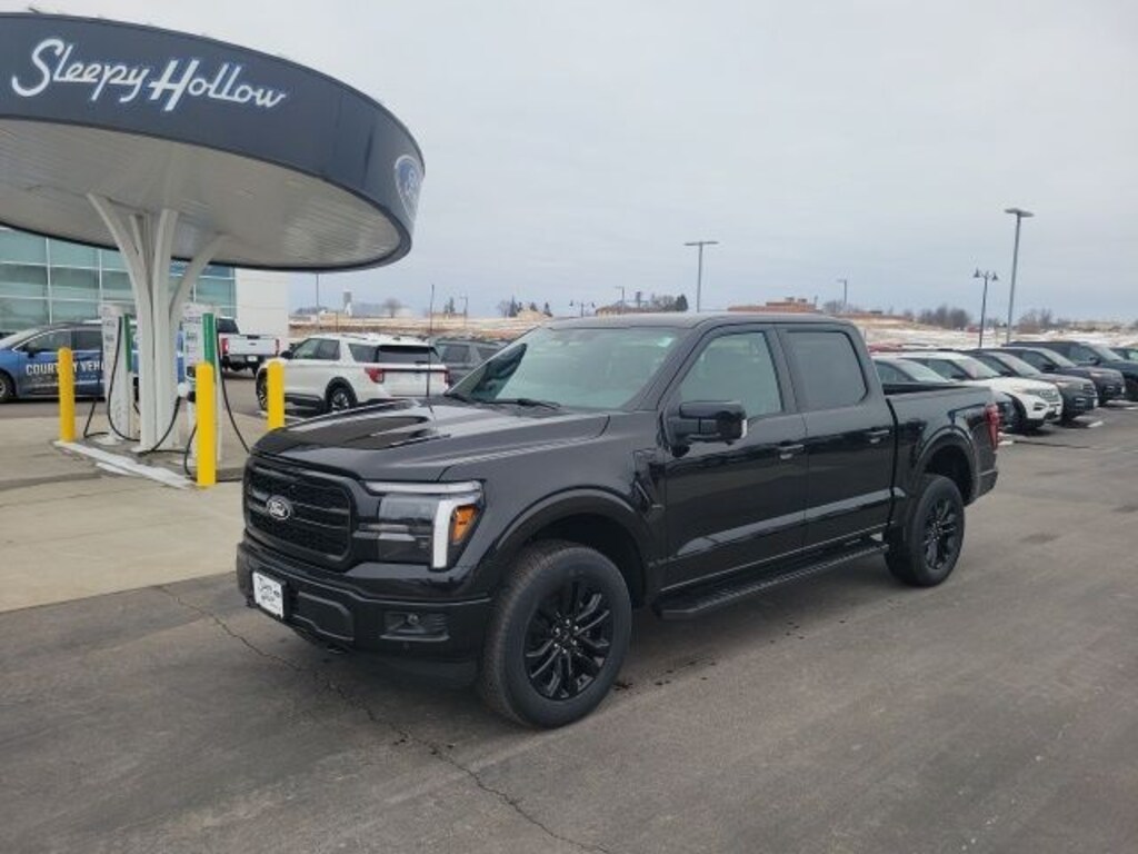 New Price! Agate Black Metallic 2026 Ford F-150 Lariat 4WD 10-Speed Automatic 5.0L V8 4WD, 6" Angular Bright Anodized Step Bar, ActiveX Trimmed Bucket Seats, Black Exterior Badging, Black Grille, Black Taillamp Bezels, Body-Color Front and Rear Bumpers, Body-Color Skull Caps and Door Handles, Dark Interior Appliques, Electronic Locking with 3.31 Axle Ratio, Equipment Group 501A Mid, Ford Connectivity Package (1-Year Included), Front fog lights, Gray Box Side Decal, Heated steering wheel, Illuminated Driver and Passenger Visors, Internet access capable: 5G Modem - Ford Connectivity Package, Lariat Black Appearance Package, Navigation system: Connected Navigation, Power-Adjustable Pedals with Memory, Power-Sliding Rear Window, Radio: B&O Sound System by Bang and Olufsen, SYNC 4 with Enhanced Voice Recognition, Twin Panel Moonroof, Wheels: 20" Gloss Black Painted Aluminum.