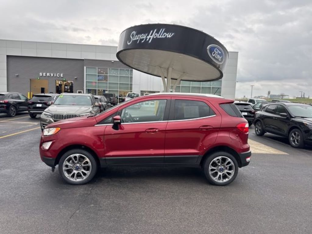 Ruby Red Metallic Tinted Clearcoat 2021 Ford EcoSport Titanium 4WD 6-Speed Automatic 2.0L I4 Ti-VCT GDI LOCAL TRADE, Equipment Group 400A, Heated front seats, Heated steering wheel, Navigation System, Power driver seat, Power moonroof, Wheels: 17" Premium Dark Stainless-Painted.