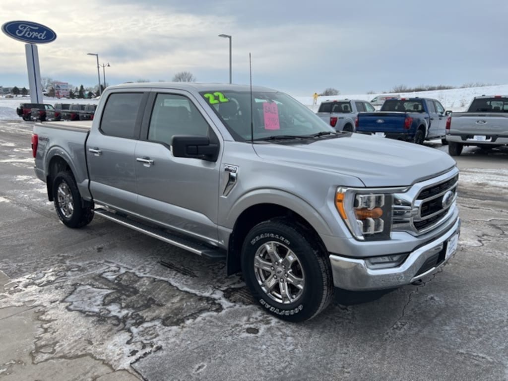 Silver Metallic 2022 Ford F-150 XLT 4WD 10-Speed Automatic 2.7L V6 EcoBoost LOCAL TRADE, 4WD, 10-Way Power Driver & Passenger Seats, 2-Bar Style Grille w/Chrome 2 Minor Bars, 8" Productivity Screen in Instrument Cluster, Auto-Dimming Rear-View Mirror, Bright Polished Step Bars, Chrome Door & Tailgate Handles w/Body-Color Bezel, Chrome Single-Tip Exhaust, Class IV Trailer Hitch Receiver, Cloth 40/20/40 Front Seat, Dual Zone Electronic Automatic Temperature Control, Electronic Locking w/3.55 Axle Ratio, Equipment Group 302A High, Heated Front Seats, Intelligent Access w/Push Button Start, Leather-Wrapped Steering Wheel, LED Reflector Headlamps, LED Sideview Mirror Spotlights, Onboard 400W Outlet, Power Glass Heated Sideview Mirrors, Power-Sliding Rear Window, Radio: AM/FM SiriusXM w/360L, Rear Under-Seat Storage, Remote Start System w/Remote Tailgate Release, SecuriCode Drivers Side Keyless-Entry Keypad, SYNC 4 w/Enhanced Voice Recognition, Wheels: 18" Chrome-Like PVD, XLT Chrome Appearance Package, Zone Lighting.