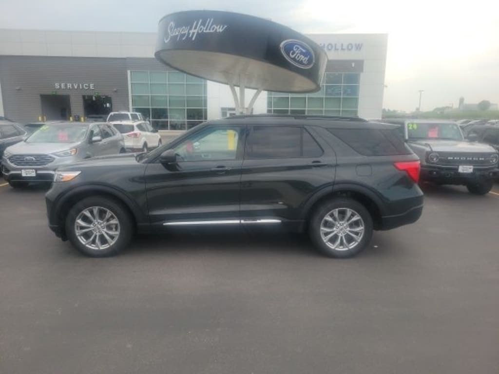 Forged Green Metallic 2023 Ford Explorer XLT 4WD 10-Speed Automatic 2.3L EcoBoost I-4 ONE OWNER, 4WD, 20" Premium Painted Aluminum Wheels, Acoustic-Laminated Front Side Windows, Class IV Trailer Tow Package, Equipment Group 202A, Evasive Steering Assist, Ford Co-Pilot360 Assist+, Heated ActiveX Captain's Chairs, Heated front seats, Heated Steering Wheel, Intelligent Adaptive Cruise Control, LED Fog Lamps, Power Liftgate, Remote Start System, SecuriCode Keyless Entry Keypad, Speed Sign Recognition, Voice-Activated Touchscreen Navigation System.