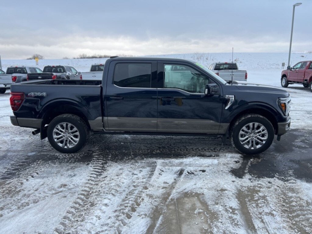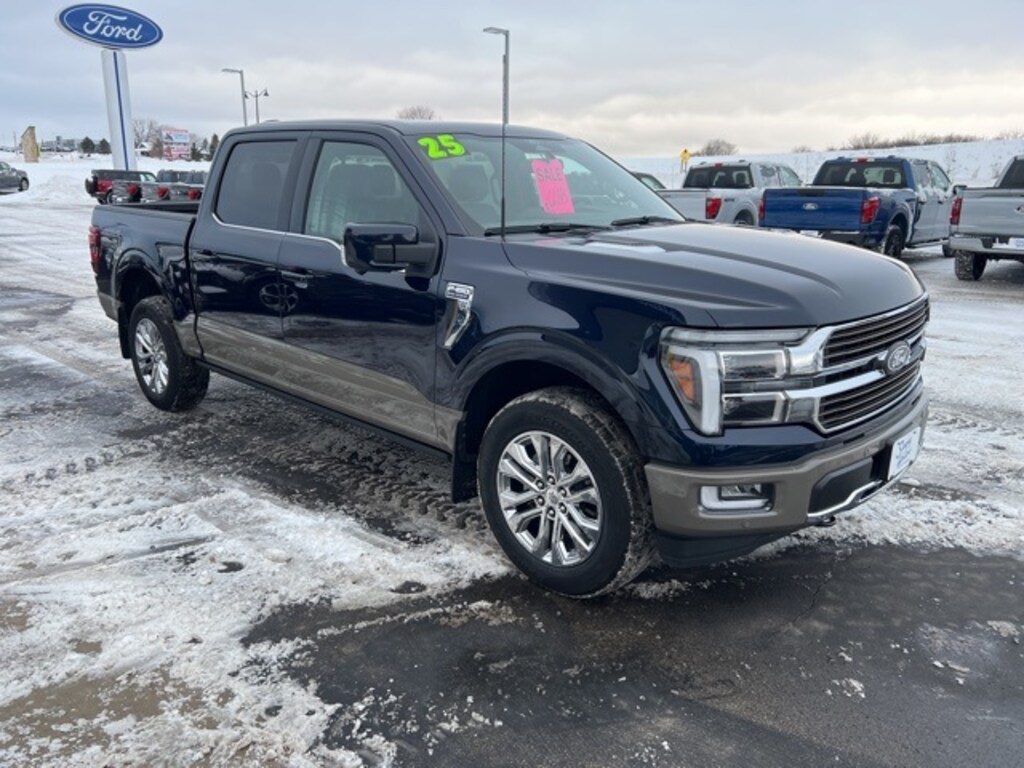 Antimatter Blue Metallic 2025 Ford F-150 King Ranch 4WD 10-Speed Automatic 3.5L V6 EcoBoost LOCAL TRADE, ONE OWNER, 4WD, Electronic Locking w/3.55 Axle Ratio, Equipment Group 601A High, Heated front seats, Heated rear seats, Heated steering wheel, King Ranch Multicontour Leather Bucket Seats, Navigation system: Connected Navigation, Power moonroof, Tough Bed Spray-In Bedliner, Ventilated front seats, Wheels: 20" Chrome-Like PVD.